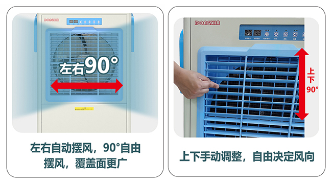 5. 出風(fēng)口可左右90度自動(dòng)擺風(fēng),適用于大范圍的降溫