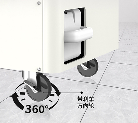 機(jī)器采用了帶有剎車的萬向輪設(shè)計(jì),方便移動(dòng)到任意空間角落進(jìn)行使用。