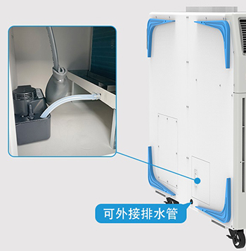 內(nèi)置智能排水泵,外接排水管。