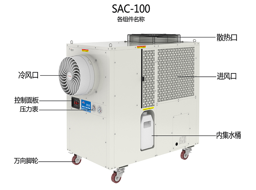 專用旋風(fēng)風(fēng)口配合大型風(fēng)機(jī),使得送風(fēng)距離更遠(yuǎn),降溫范圍更廣。